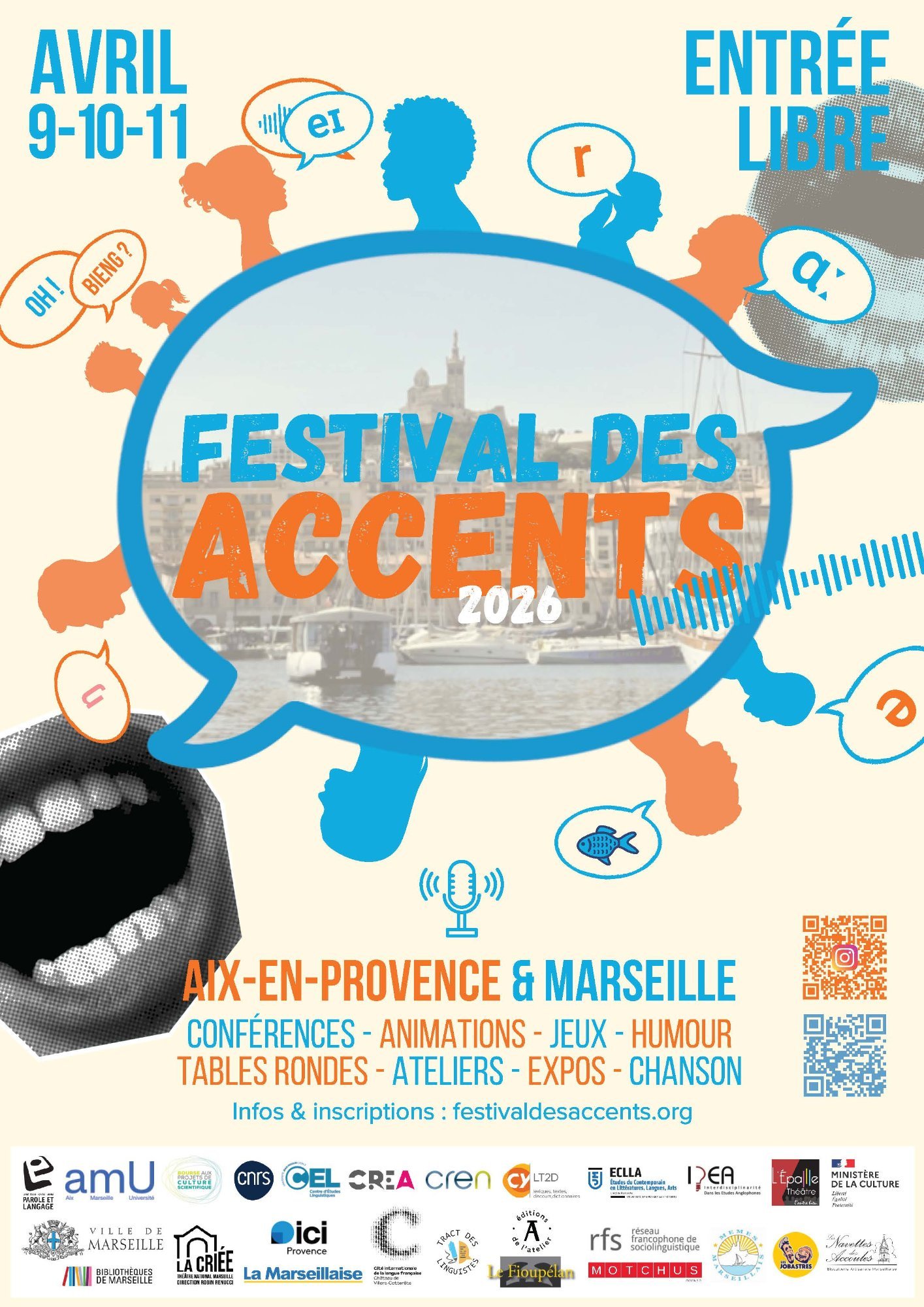 Les accents sont abordés sous l’angle de la production, de la perception et des représentations, des aspects acoustiques et phonétiques aux enjeux sociaux, culturels et politiques. Des spécialistes des accents en français et en anglais mettent en avant des recherches dans ces langues-là, mais le Festival est ouvert aux accents dans toutes les langues du monde.