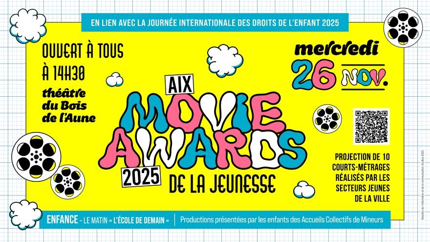 Cette partie sera ouverte aux familles et public extérieur, et entrée libre. Elle sera portée par l’association de gestion du centre Albert Camus, autour d’un rendez-vous inédit : le « AIX MOVIE AWARDS de la Jeunesse ». 10 courts-métrages, réalisés par les jeunes Aixois (12–18 ans) sur la thématique « Lutte contre le décrochage scolaire et bien-être à l’école », seront proposés à tous.