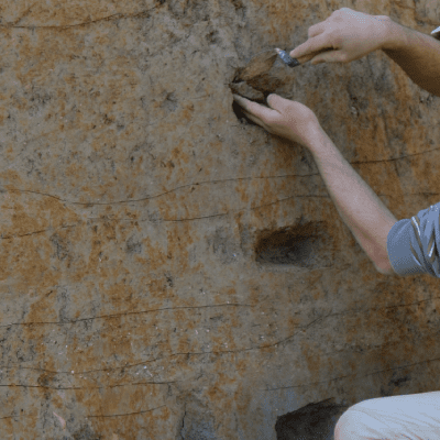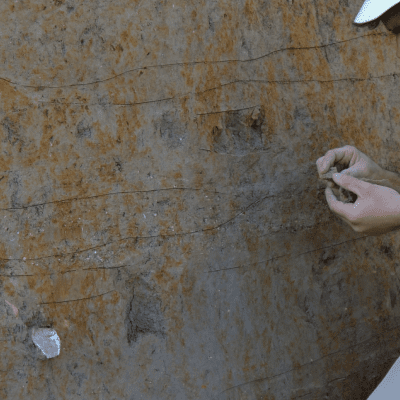 - Travail d’un géomorphologue sur le terrain : le prélèvement des différentes couches sédimentaires.