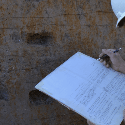 - Travail d’un géomorphologue sur le terrain : l’examen des différentes couches sédimentaires.