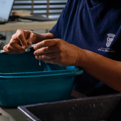 Sur le terrain, la présence ponctuelle ou continue du céramologue permet de proposer les premières hypothèses de datation du site, d’orienter la stratégie de fouille et de fixer les priorités. Lors de la découverte d’un ensemble conséquent de mobilier, le céramologue met en place un protocole de prélèvement qui, par la suite, optimisera l’étude en laboratoire.