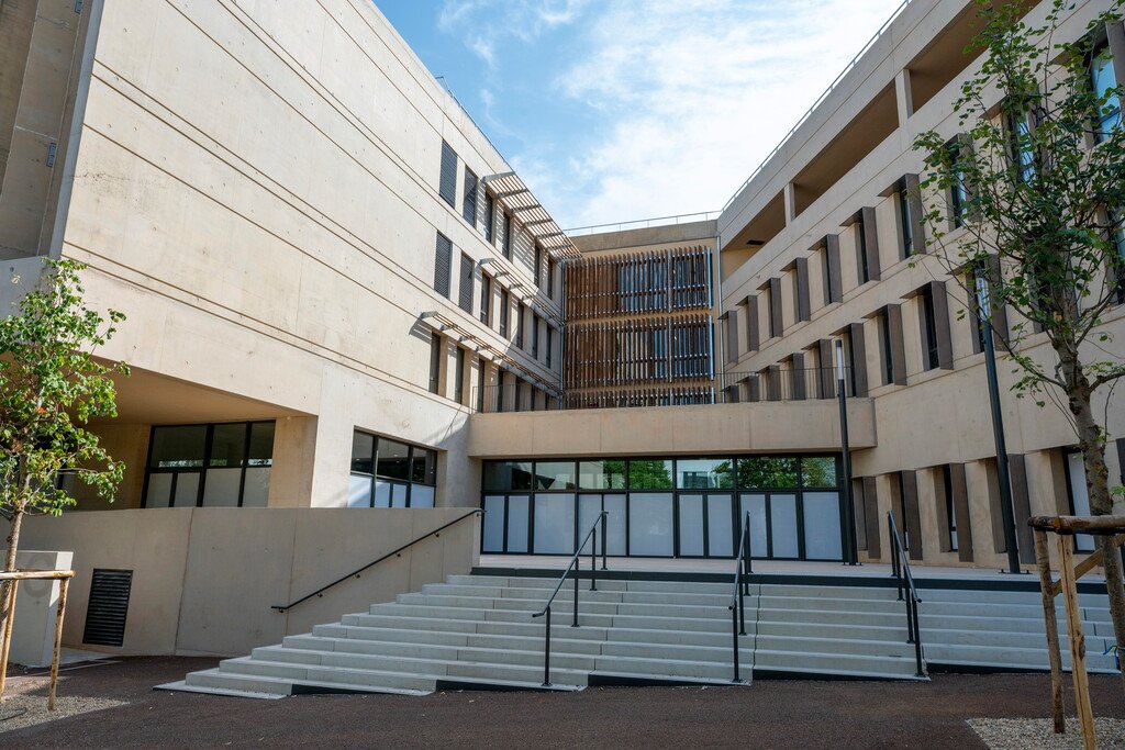 Situé dans un espace arboré avec vue sur la Sainte-Victoire, le campus est également pensé pour encourager les mobilités douces : un parking vélo de plus de 100 places a été aménagé à destination des étudiants.