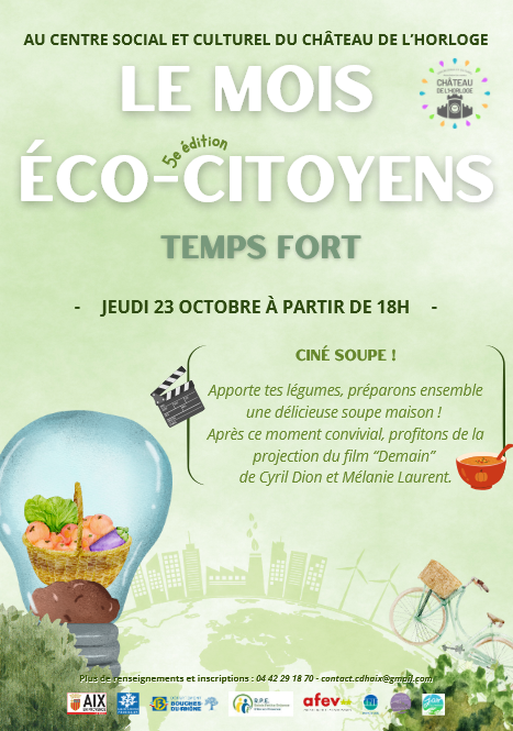 - 23 octobre : Ciné-soupe (temps fort destiné aux seniors" avec la projection du film "Demain")