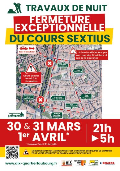 La fermeture du Cours Sextius concerne les dates suivantes :