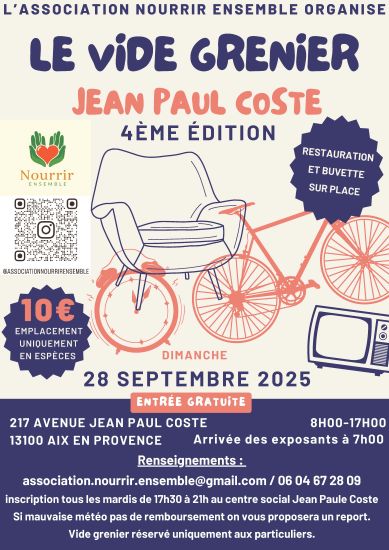 Les emplacements du vide-greniers seront reversés au profit de l’espace solidaire du centre socio-culturel Jean-Paul Coste dans lequel l’association propose des distributions alimentaires gratuites tous les mardis de 17h30 à 21h pour les étudiants et les personnes dans le besoin.