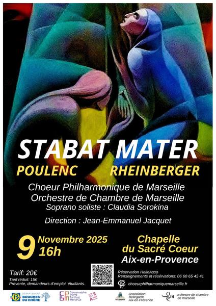 Le Stabat Mater de Francis Poulenc a été composé en 1950 en mémoire de son ami Christian Bérard. Cette œuvre lumineuse incarne la peine humaine. Le compositeur nous emmène dans des atmosphères très différentes , tour à tour graves, austères, fulgurantes, ..... Il dira qu’il " y a mis son âme "