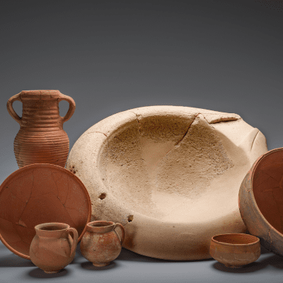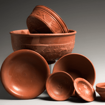 Une multitude d’objets manufacturés dans d’autres provinces sont accessibles aux habitants d’Aix-en-Provence : vaisselle en verre, en métal et, surtout, en céramique produite à échelle industrielle par des officines souvent installées sur les côtes méditerranéennes ou sur de grands axes de communication. La céramique campanienne à vernis noir, puis les plats et assiettes en sigillée italique à vernis rouge représentent une partie de la vaisselle de table jusqu’au milieu du Ier s. ap. J.-C., avant d’être remplacés par les vases en sigillée de Gaule du sud fabriqués dans les ateliers de la Graufesenque (Millau). Des gobelets à parois fines décorés de Bétique et des vases en céramique à vernis orangé de la vallée du Rhône complètent ce répertoire. Du milieu du IIe aux VIe et VIIe s., les vaisselles africaines à vernis orangé s’imposent peu à peu sur le marché des importations, de même que toute une gamme de vases utilitaires pour la cuisine, venus d’Afrique et d’Italie et, dans une moindre mesure, de la basse vallée du Rhône et de Mer Egée. La question de la destination, du mode de transport et de la clientèle de ce type de produits n’est toujours pas résolue. S’ils ont pu, dans certains cas, représenter un chargement secondaire complétant la cargaison principale des navires, et permettre ainsi d’augmenter le profit du voyage en occupant des espaces laissés libres entre les amphores, on ne peut exclure qu’ils aient été commercialisés pour leur valeur propre. À l’image d’une part de la consommation alimentaire et des goûts en matière architecturale, ils répondent, en effet, aux besoins d’une population désireuse d’adopter un mode de vie à la romaine.