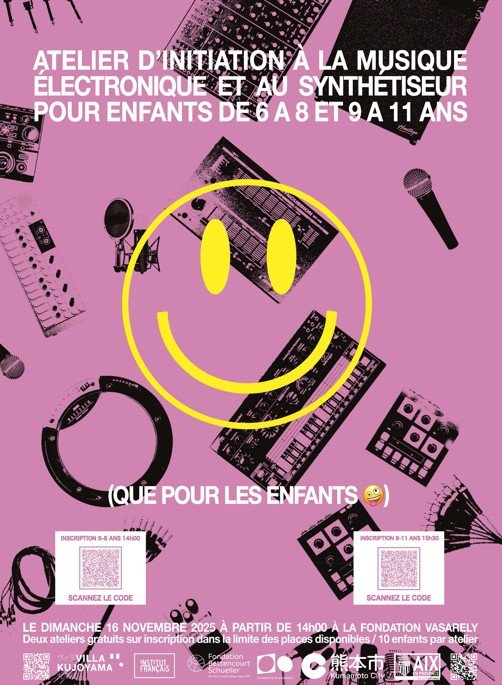Dans le cadre du programme de résidence artistique entre les Villes de Kumamoto et Aix-en-Provence avec la Villa Kujoyama, le musicien et compositeur Krikor Kouchian organise deux ateliers d’initiation à la musique électronique et au synthétiseur pour les enfants le dimanche 16 novembre, à la Fondation Vasarely.