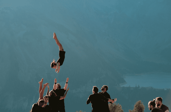 Les samedi 11 et dimanche 12 avril, près de cinquante artistes : une trentaine d’acrobates du Collectif XY et douze musiciennes et musiciens venus d’Italie et d’Occitanie dirigés par Manu Théron, habiteront le cœur d’Aix-en-Provence pour un grand moment poétique et fédérateur.
