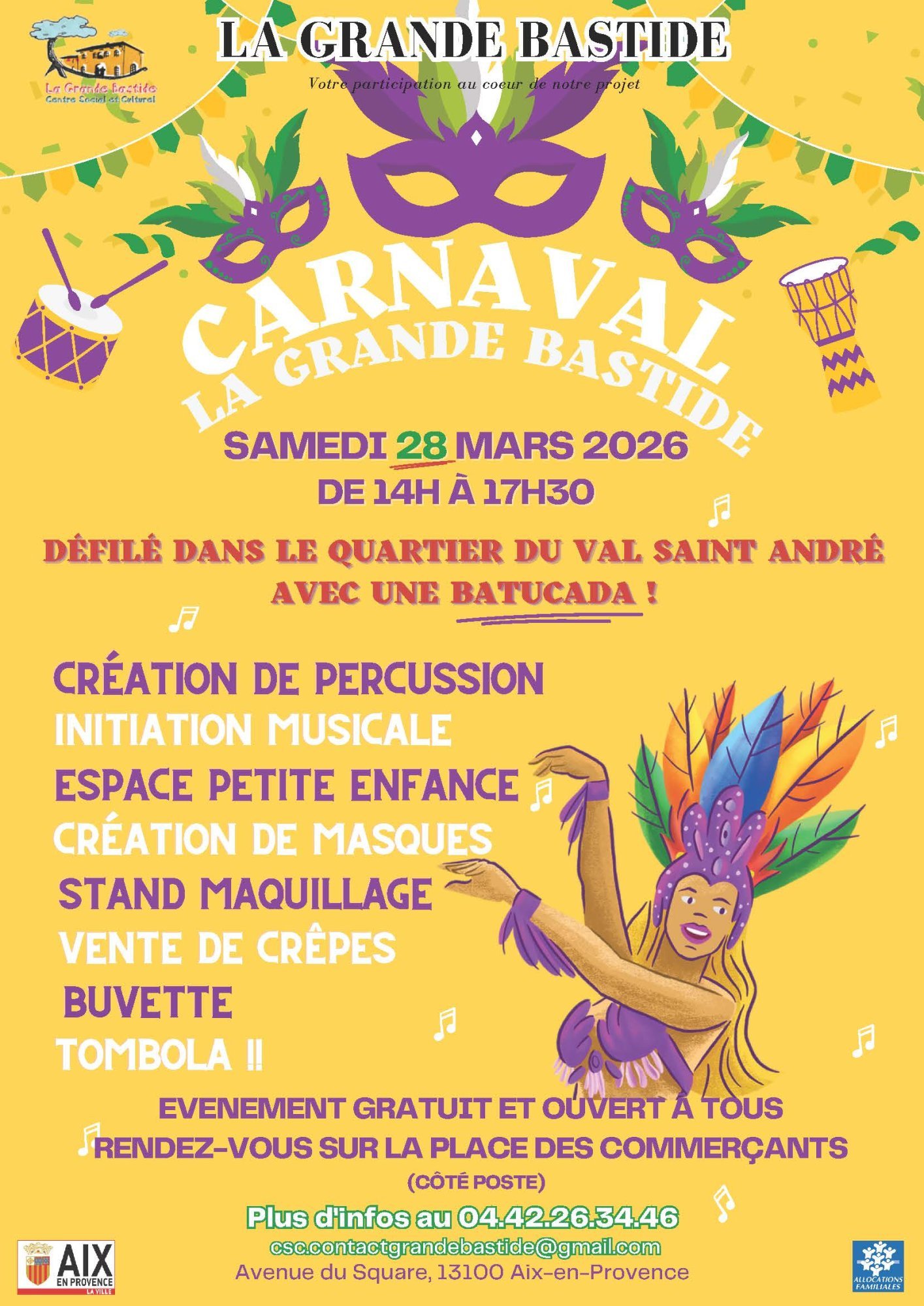 - 15h30 : Départ du défilé depuis l’avenue du Square, pour une déambulation dans le quartier Val St André. La batucada Curinga accompagnera le défilé au son des percussions brésiliennes.