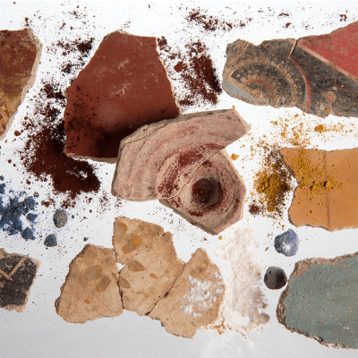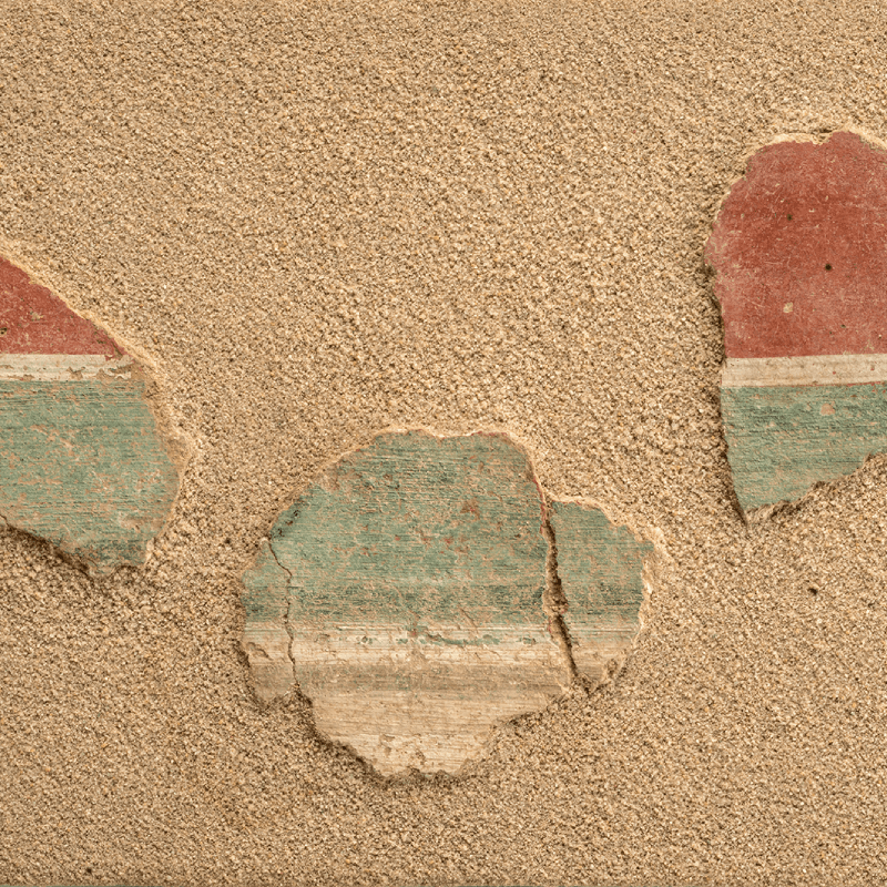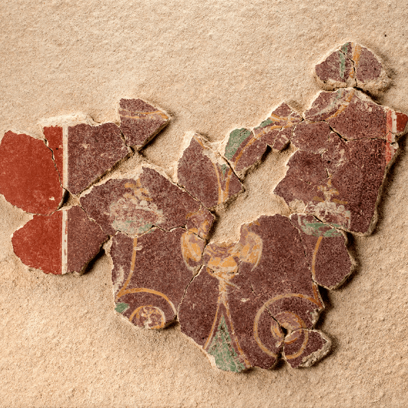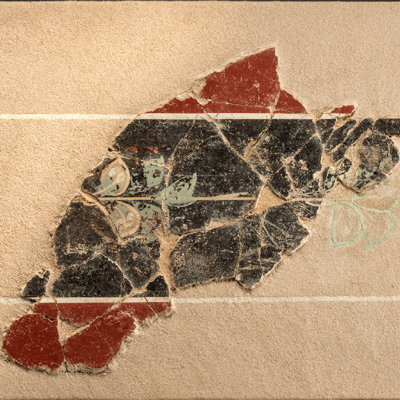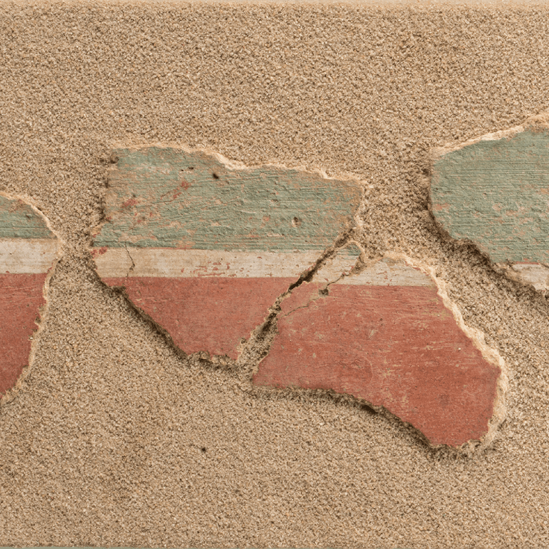 Support destiné à être masqué ou ornementé par la couche picturale, le mortier est enfin révélateur de techniques et de savoirs-faire : enduits hydrauliques de bassins d’agréments, enduits de plafonds, de voûte ou encore de colonnes, ils conservent parfois à leur revers l’empreinte de leur support disparu. Même récupéré ou détruit, le support maçonné peut alors être identifié et documenter l’architecture d’une pièce ou d’un espace.