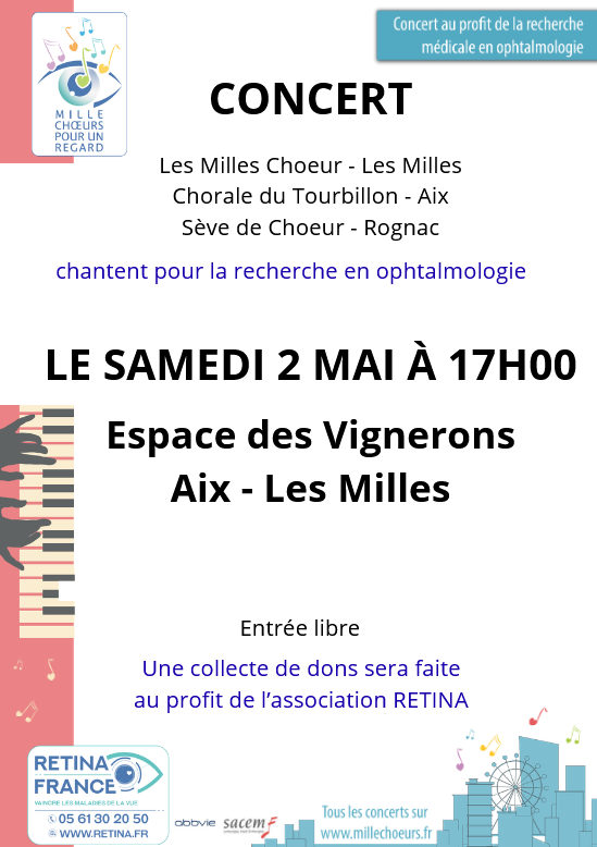 Ce samedi 2 mai 2026, l’association Mille choeurs pour un regard organise un concert à l’espace des Vignerons aux Milles.