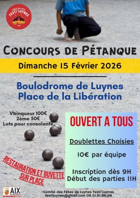 Au programme, un concours de pétanque en doublettes choisies, buvette et restauration sur place de 9h à 21h sur le terrain de pétanque Place de la Libération.