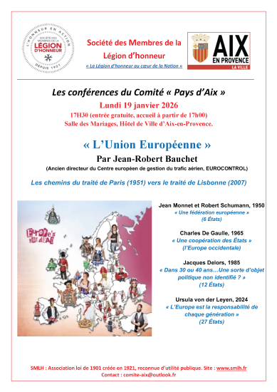 Animée par Jean-Robert Bauchet, ancien directeur du Centre européen de gestion du trafic aérien EUROCONTROL, la conférence abordera les cheminements qui ont jalonné le parcours du traité de Paris (1951) vers le traité de Lisbonne (2007), selon plusieurs grands thèmes (les fondations, les grandes évolutions, le traité de Lisbonne...).