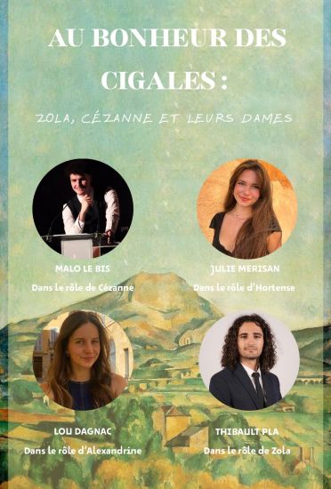 À travers ce spectacle proposé et coordonné par la Direction du Patrimoine, nous souhaitions donner libre cours à l’imagination et à l’interprétation de cette correspondance entre ZOLA et CEZANNE à de brillants étudiants aixois, tous primés de divers concours d’éloquence. Ainsi ce sont de jeunes talents en herbe qui s’exprimeront ce soir pour notre plus grand plaisir :