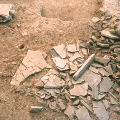 - Débris de marbres amassés dans l’une des pièces de la domus du parking Pasteur