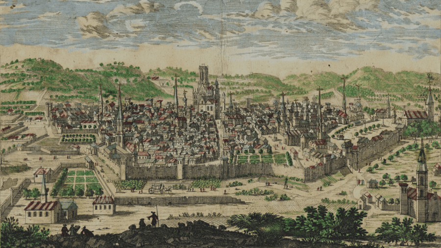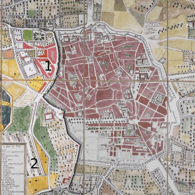 - Plan de Louis Cundier 1680 (1=Faubourg des Cordeliers 2= Jeu de mail)