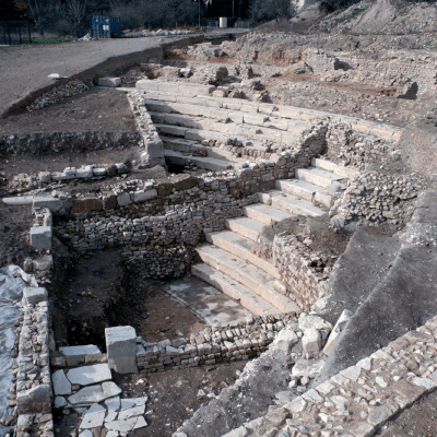 - Vue depuis l’est des vestiges du théâtre en 2004