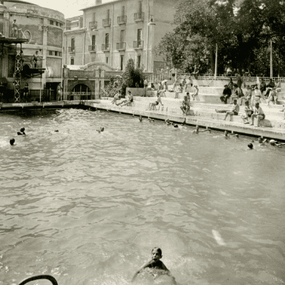 Porté par les radicaux Abram et Bertrand, le projet « Aix, ville d’eaux » de la période 1890-1920 pose les bases d’un développement thermal. En 1895, Abram reprend l’analyse du docteur Bourguet, publiée en 1880. L’excellence de la station hydrominérale aixoise procède, non point de la nature de ses eaux, mais plutôt de ses atouts touristiques. Entretenant un silence habile sur la température insuffisante des eaux thermales, il parie sur l’impact de l’excursionnisme. Le tourisme devient dès lors l’élément d’impulsion de la révolution thermale, couronnée par l’ouverture du casino municipal en 1924. La fabrication d’une station thermale renvoyant à la ville d’art, construction idéologique complémentaire de la ville d’eaux, la synthèse de ces deux concepts forge le slogan moderniste de « ville d’eaux et d’art », fer de lance du discours municipal défendant un modèle distingué de développement touristique durant tout le XXe siècle.
