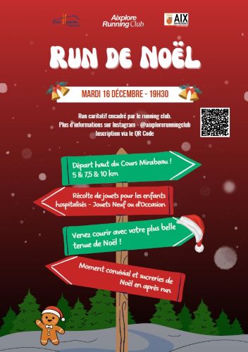 Le mardi 16 décembre prochain, Aixplore Running Club organise un "Run de Noël" dans les rues d’Aix-en-Provence.