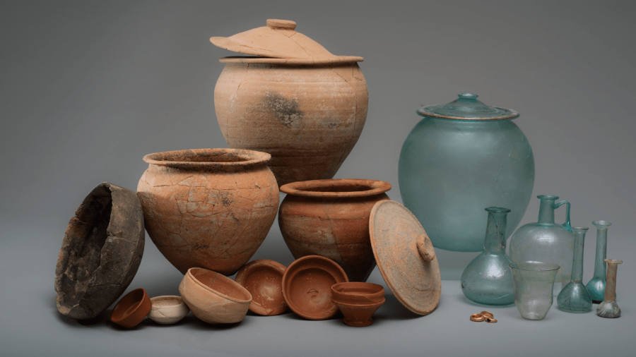À l’époque romaine, les rituels funéraires incluaient parfois des animaux. Trois types de dépôts sont attestés : l’inhumation d’un animal familier, le dépôt symbolique et les restes de repas funéraires. Le rite que l’on pourrait qualifier « d’accompagnement » au cours duquel un animal familier était inhumé avec le défunt dans ou à proximité de la sépulture est connu en Narbonnaise, mais pas dans la nécropole sud d’Aix-en-Provence, où le répertoire des objets qui accompagnent le défunt, est relativement standardisé. Il comprend des ustensiles liés à la toilette ou à la parure, de la vaisselle qui devait contenir des liquides ou des aliments, des lampes aussi, ainsi que des petits vases en céramique miniature qui semblent avoir été fabriqués spécialement pour un usage funéraire ou rituel. Et parfois de la monnaie en bronze (oboles à Charon), qui permettait au mort de s’acquitter du tribut nécessaire à son passage dans l’au-delà.
