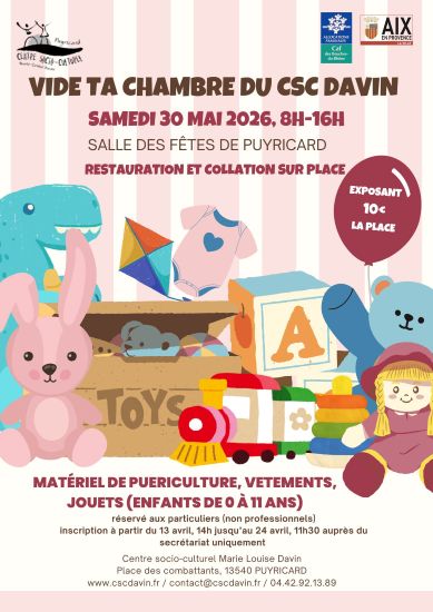 Ce samedi 30 mai 2026, le Centre socio-culturel M-L. Davin organise un vide-poussette.