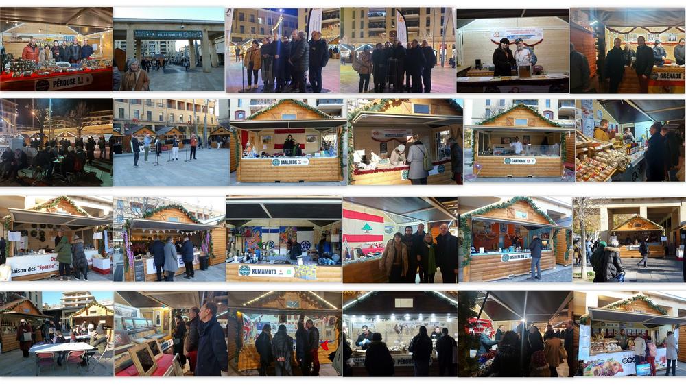 Un village de chalets, sur la Place François Villon, accueille 10 pays et 16 exposants (représentants, artistes créateurs, artisans, commerçants de bouche) originaires des villes avec lesquelles Aix est jumelée : Ashkelon, Baalbeck, Bath, Carthage, Grenade, Kumamoto, Masis, Pécs, Perugia, Tübingen... Nous attendons un grand nombre de visiteurs du Pays d’Aix et de la Région.
