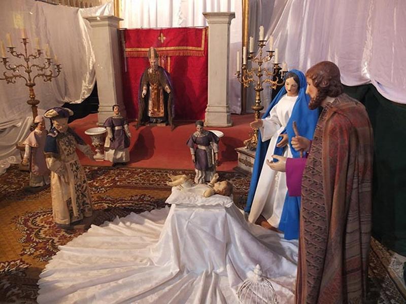 Il s’agit, après démontage de la crèche de Noël, de figurer la présentation de l’enfant Jésus au temple 40 jours après sa naissance. Ceci implique évidemment la présence de nouveaux santons tels que le grand prêtre et d’un nouveau décor, le temple.