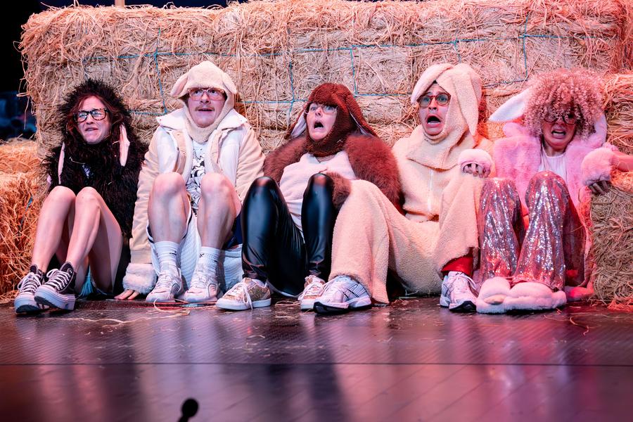 À la ferme, plus rien ne tourne rond depuis que le fils ainé s’est pendu dans la grange. Le père (Marc Bodnar) pose des clôtures en tenue d’Adam, la mère (Cristiana Reali) dialogue avec son fils mort en fumant des Gitanes au fond de son lit tandis que dans les champs les pitbulls attaquent les moutons... qui discutaient philosophie pour tromper la peur du loup. À cette dinguerie agricole viennent s’agréger une journaliste obsédée par un scandale chimique et un stagiaire maghrébin qui se prend de passion pour les travaux des champs. Écrite et mise en scène par Pierre Guillois, cette partie de campagne nous embarque avec délice en terre incongrue.