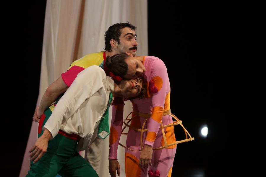 Sur une bande-son pop signée du magicien metteur-en-son André Serré, trois personnages habillés de costumes aux couleurs acidulées s’agitent à la manière d’une bande dessinée vivante. Il y a l’Amoureux au cœur sensible, sa bien-aimée tout en chair et en muscles, et un drôle de maître de cérémonie au nom mystérieux d’Anatom’ ! Tous les ingrédients sont réunis pour que la danse parle aux enfants et les éclaire ingénument sur leur anatomie. Légèreté, humour, fraîcheur sont les clés de la réussite de ce joyeux trio.